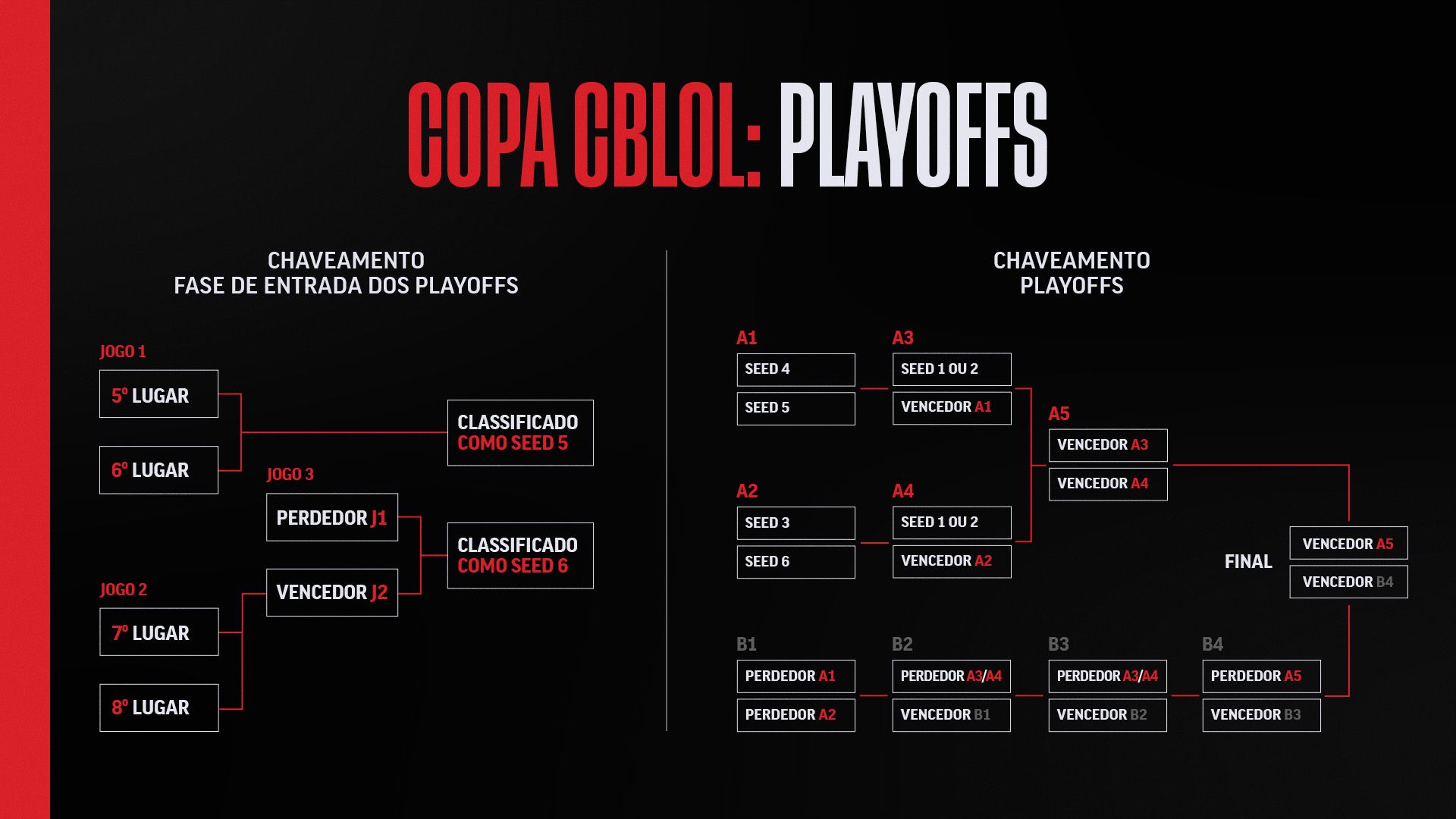 Nos Playoffs, o sistema de chaveamento duplo oferece vantagem aos melhores da fase regular. Os times que terminarem em 1º e 2º lugar começam diretamente nas Semifinais da Chave Superior. O campeão da fase regular tem ainda o direito de escolher sua posição no bracket, influenciando seus possíveis adversários. As equipes classificadas entre a 3ª e a 6ª posições iniciam a disputa nas Quartas de Final, todas com chance de recuperação na Chave Inferior.