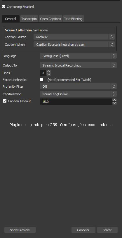 Depois de feito isso, faça um teste com seu microfone ligado. Você vai ver que vai ter uma janelinha dentro do OBS que vai escrever o que você fala. Essa janela é móvel, ou seja, você pode arrastar ela para qualquer lugar dentro do programa OBS e deixar do seu jeitinho!