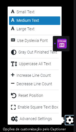 EXTENSÃO STREAM CLOSED CAPTIONER.
